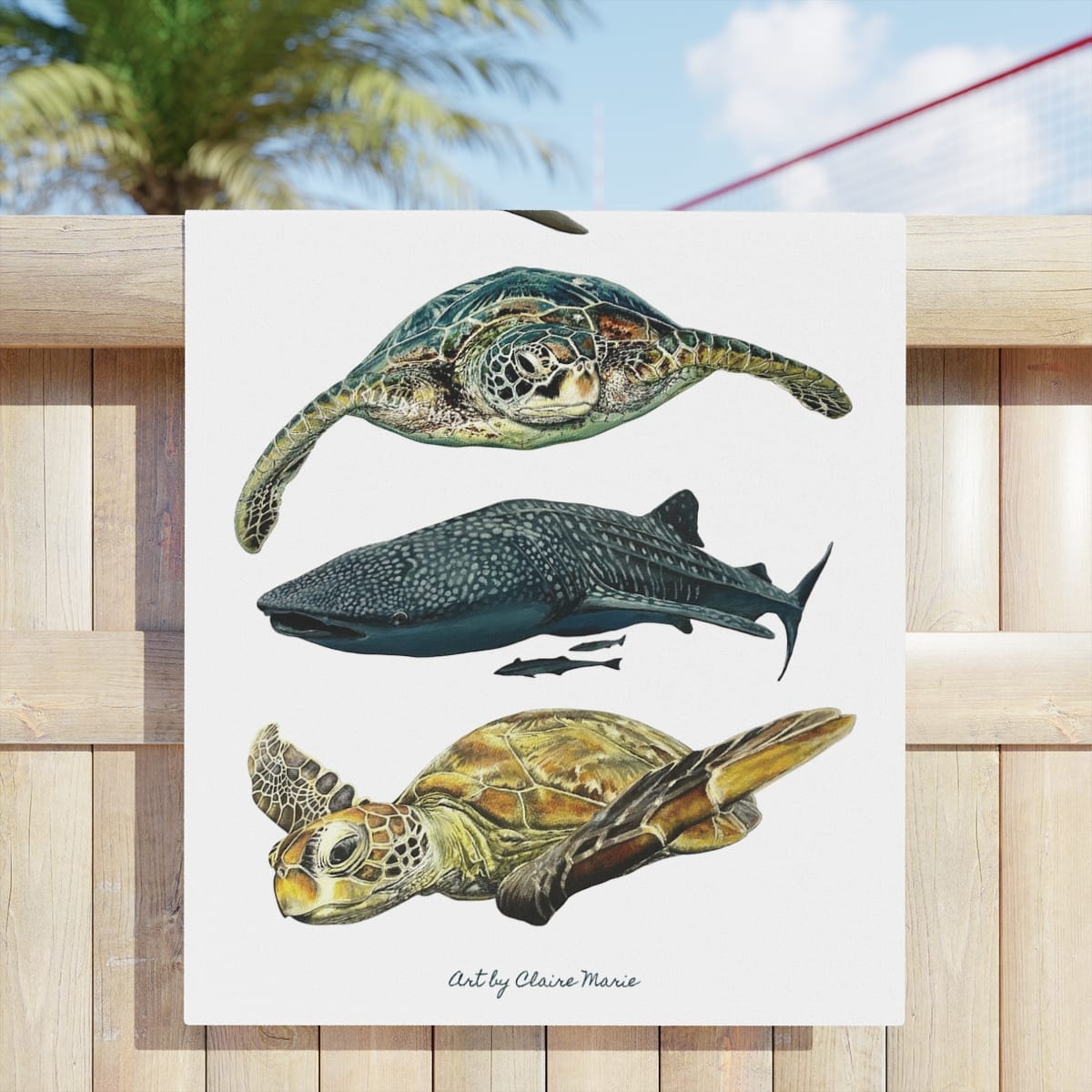 This towel design also includes Willow the whale shark and the ocean guardian - two sea creatures that can be found in my fine art prints below.